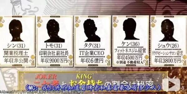 节目的最后,只有一位女嘉宾选到了真富豪,其他4位女嘉宾全部看走眼,错过了剩下的另一个富豪,31岁收入1亿日元左右的私人税务师。
