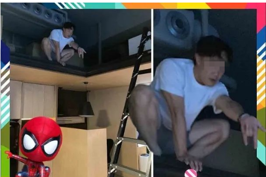 因为疫情关系,陈奕迅工作量锐减,闲来无事,便在家模仿起蜘蛛侠。