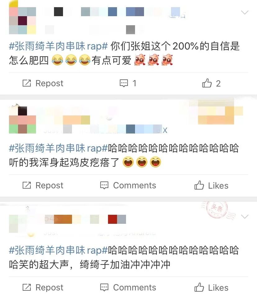 这期节目播出后,“张雨绮羊肉串味rap”的话题就上了热搜。