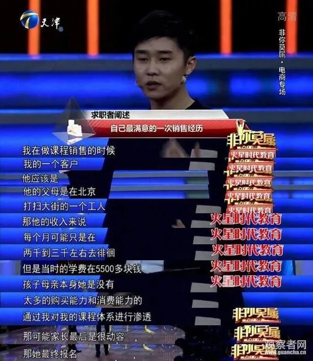 他自信又得意地回答:“我在一家教育培训机构做销售时,成功向一位月薪两千的环卫工推销了一套五千多的情商课程。”