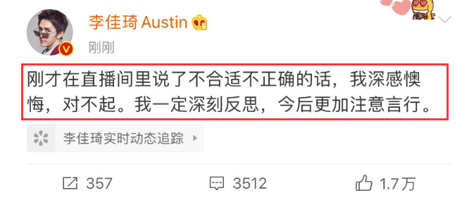 直播结束后,李佳琦就赶紧在凌晨发了一个道歉微博。