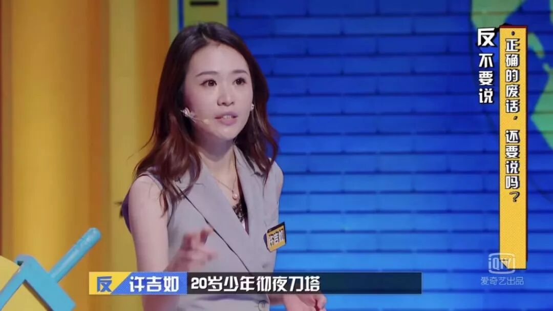 新一季的《奇葩说》辩手许吉如在辩论时说,你想让一个人别熬夜,直接跟他说:“宝贝,不要熬了,一起来睡觉吧,明天早点起来,我陪你一起玩”;