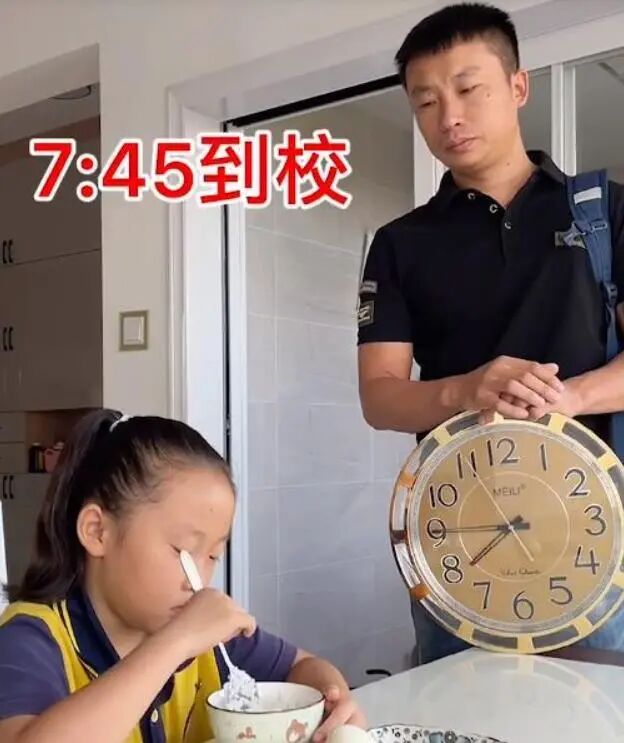 比如,7点45分就要到学校,眼看着45分就要过了,女儿小钰却还在一粒粒扒早饭。明明被闺女气得胃疼,可当爸的愣是闭紧嘴巴,不催不吼,静静等在一旁。