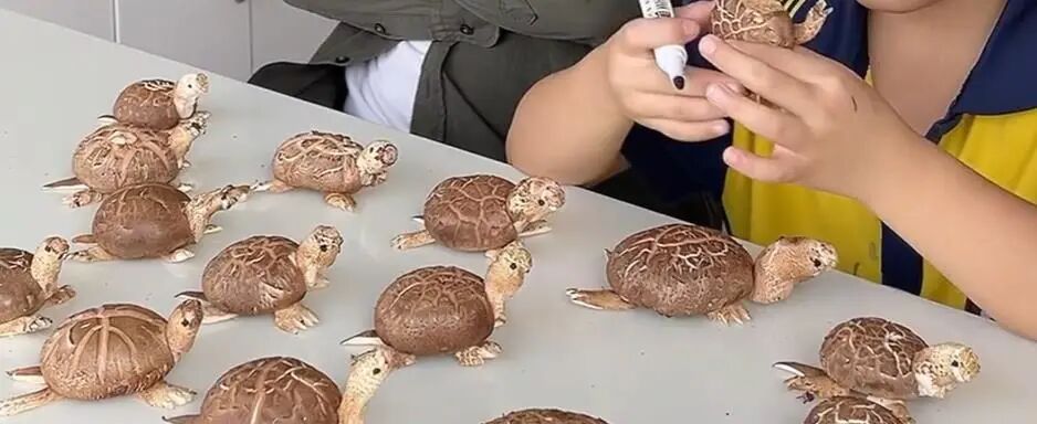 不起眼的香菇,在她的精心雕琢下,变成了可爱的乌龟,上演一场“乌龟开会”。