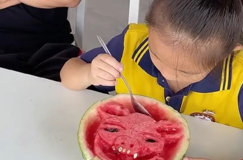 在小钰看来,吃西瓜是一场行为艺术表演,分分钟松给你抠出一个猪八戒。