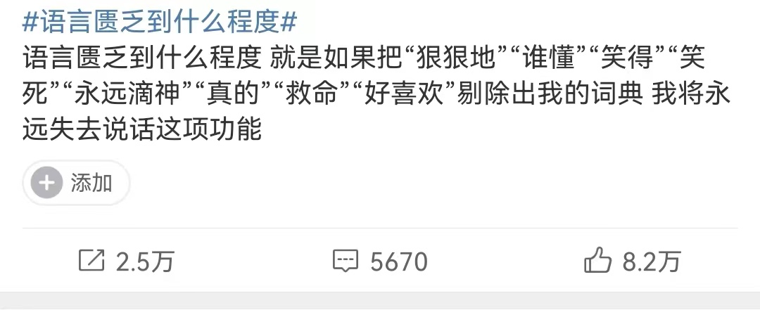 早前看到一个上了热搜的话题:语言匮乏到什么程度?