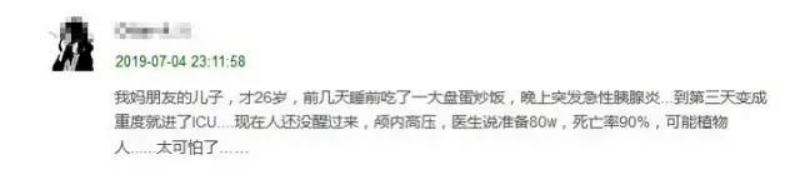 前不久还有个新闻,说一个26岁的小伙,睡前吃了一大盆蛋炒饭,结果当晚突发急性胰腺炎,送医后的第三天病情就恶化了。