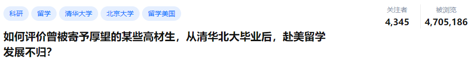 前两天,知乎热榜上有这样一个话题:如何评价曾被寄予厚望的某些高材生,从清华北大毕业后,赴美留学发展不归?
