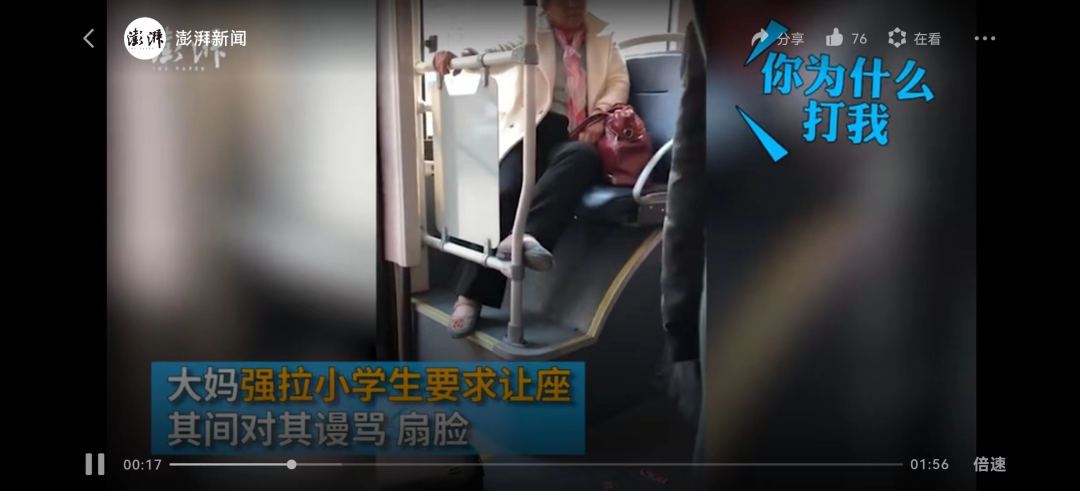曾经有一段老人要求学生让座,学生不让而大打出手的视频在网上疯传。