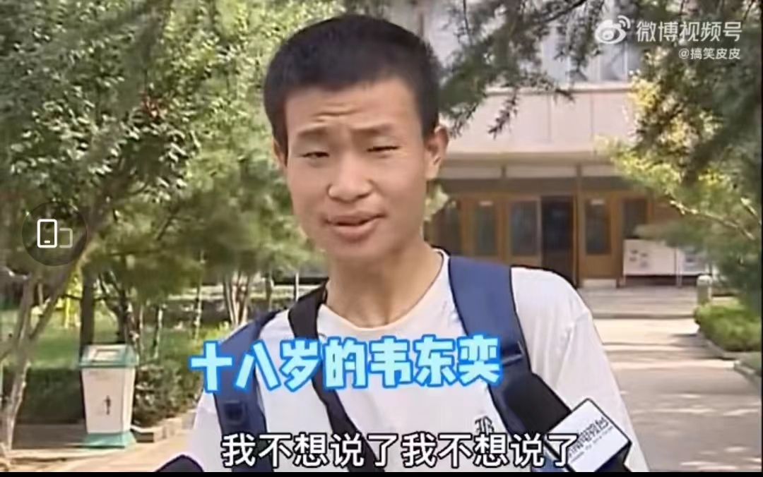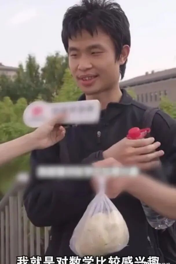 他提着一袋馒头和一瓶水,笨拙地回答着记者的问题,却在不经意间透露自己被保送至北大读书的事实——因为优异的数学竞赛成绩。
