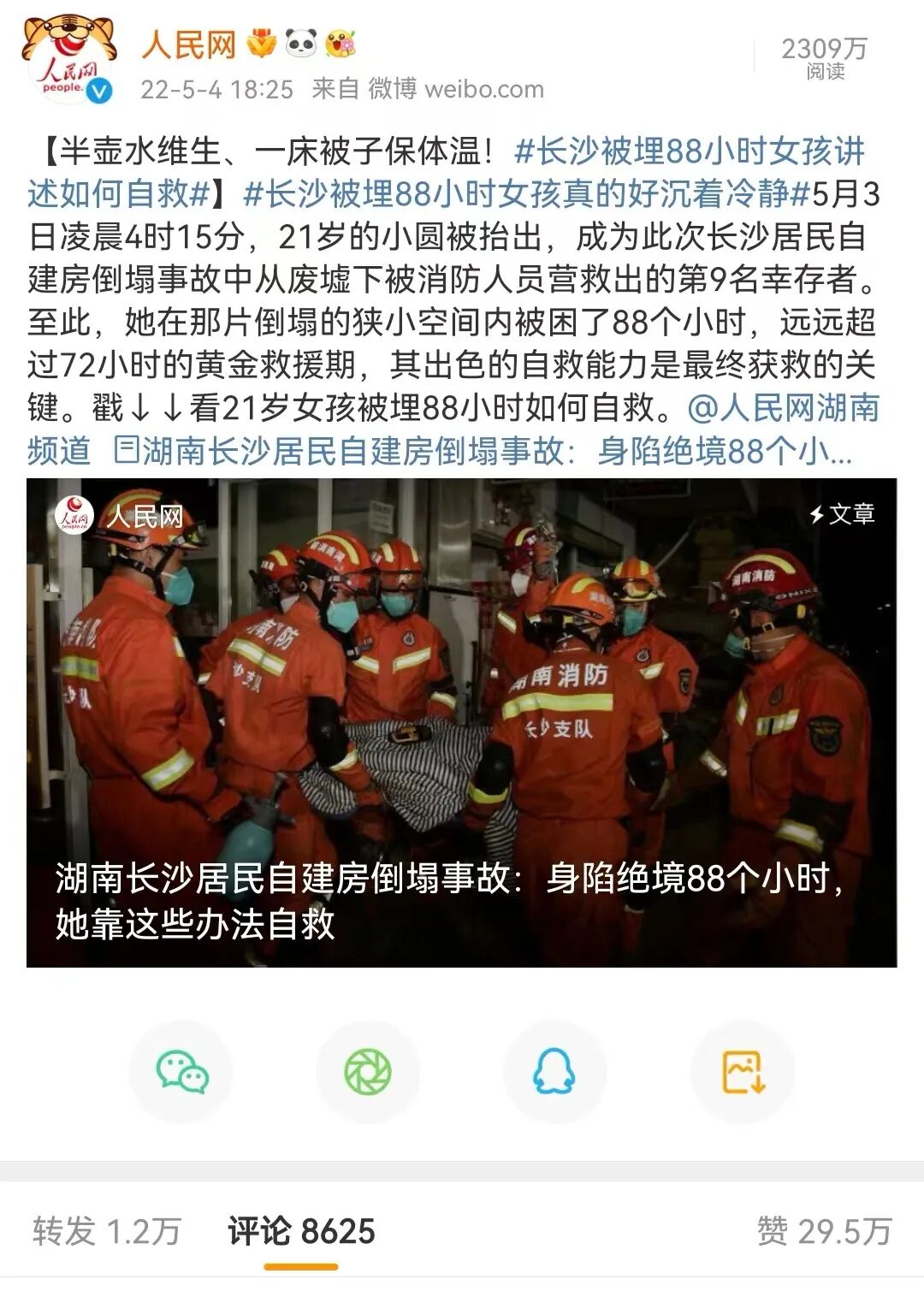其中一位叫小圆的受困者,向世人展示了一份教科书级别的自救指南,获赞30万。