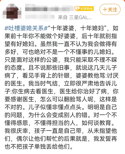 前几天,看到一个吐槽婆婆的帖子。