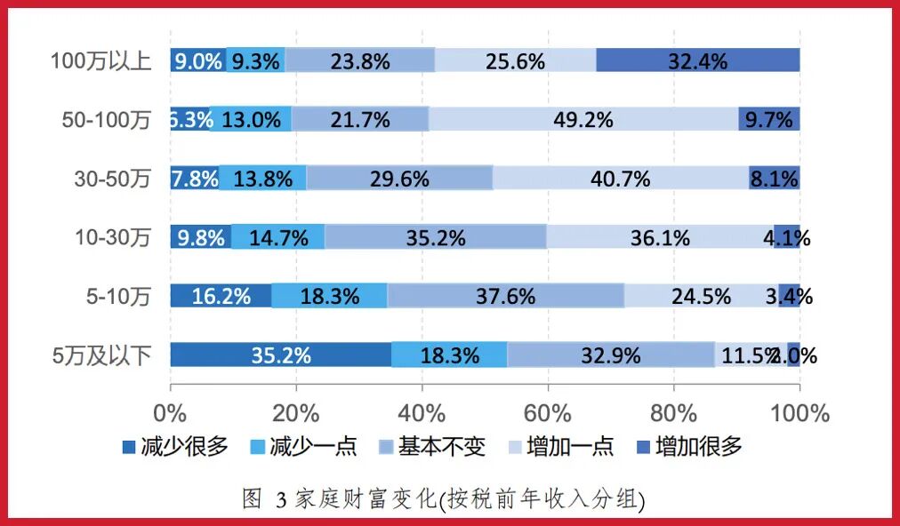中国家庭税前年收入在五万及以下的家庭中,有53.5%的家庭财富在疫情之下减少了。
