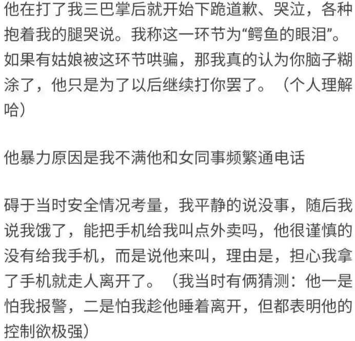 但家暴只有0次和无数次,对方的下跪和讨好,不过是为了日后能够继续打你。