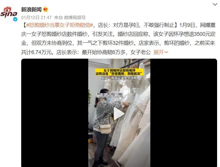 这件事上热搜后瞬间引发了热议,有人表示,店家也有责任,因为孕妇在剪婚纱的时候,店员不仅不上前阻止,还录视频,这不就是在任由事态往坏的方向发展吗?
