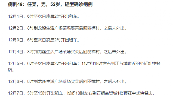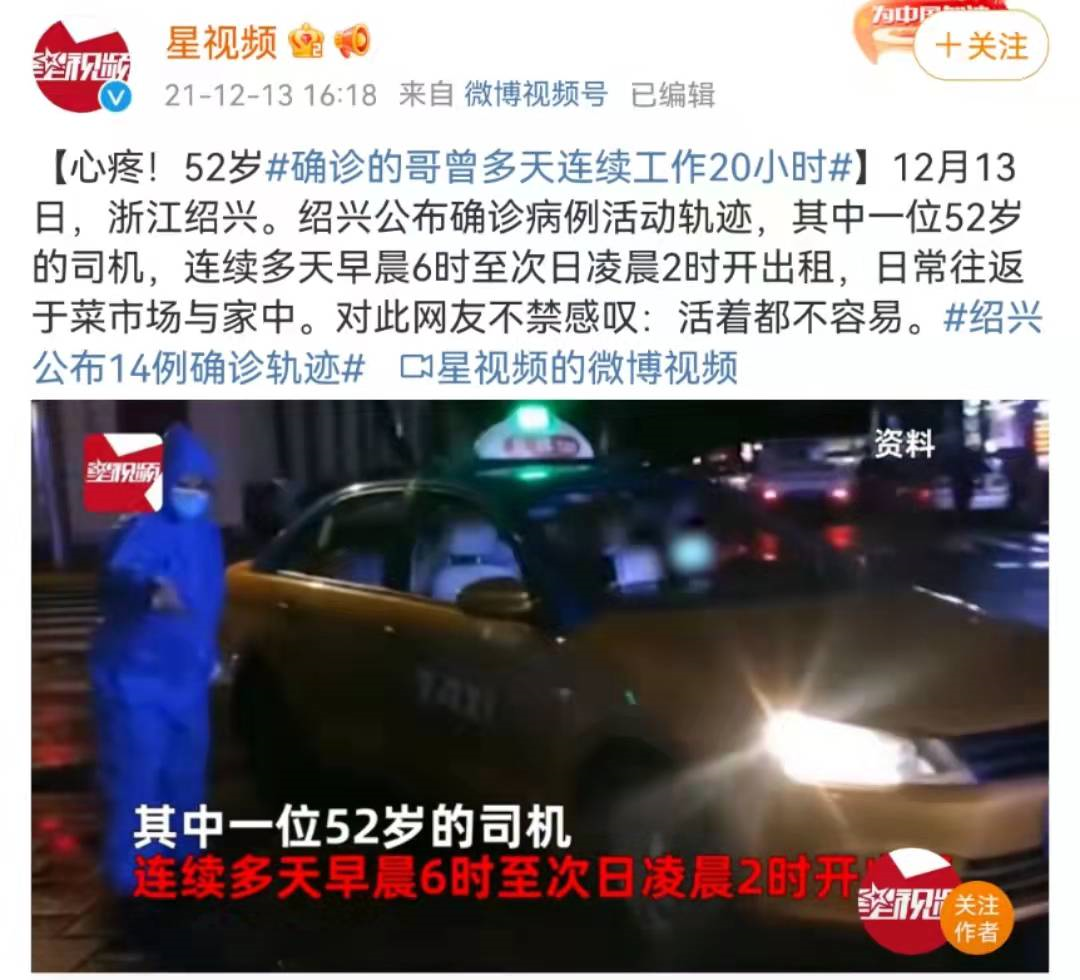 流调报告显示,任某是一名52岁的出租车司机,在被确诊前的7天里,他连续多天从早晨6点,跑车到凌晨2点。