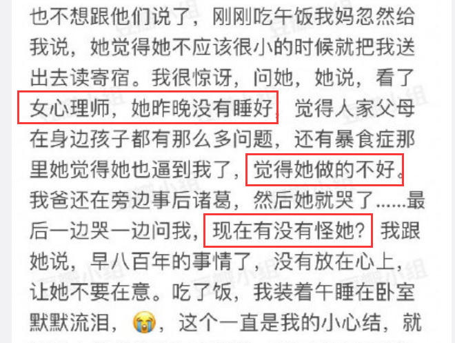 一个网友发帖说,自己从小成绩很好,初中就开始住校,高中也住校,但是有什么话也不想跟父母说。