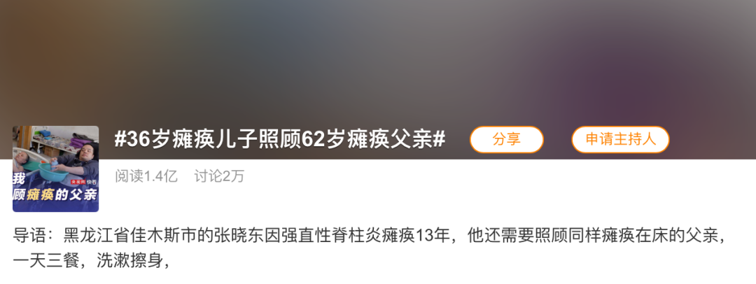 视频的主角叫张晓东,今年36岁,因为强直性脊柱炎,瘫痪了13年,从脖子开始一直到髋关节、胯骨再到膝关节,都处于僵直状态动弹不得。