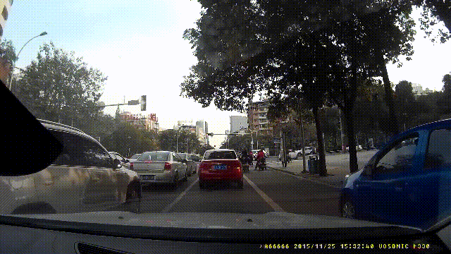 监控录像就显示,有一辆大货车,在看到车道前方的白色轿车后,立马紧急刹车,迅速换道,情况十分危险。