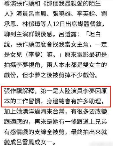 节目中,李梦表演完毕,张纪中说:“听说这个人比较难搞,尤其是《白鹿原》把你换掉了。”
