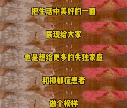 第三是希望给失独、抑郁症家庭做个榜样,让他们看到生命还有积极美好的一面。