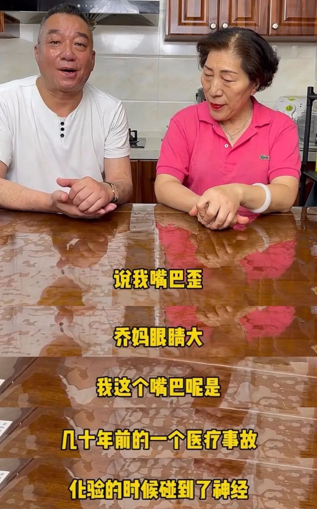 乔爸爸说自己的歪嘴是几十年前一起门诊医疗事故造成的,直接原因是触碰到了神经,最后还不忘提一嘴“我不介意大家叫我歪嘴乔老爷”。