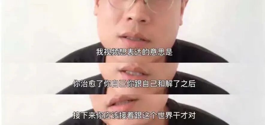 作者自己在接受采访时也说:“视频想表达的意思是,你治愈了你自己跟自己和解之后,接下来你应该接着跟这个世界干才对。”