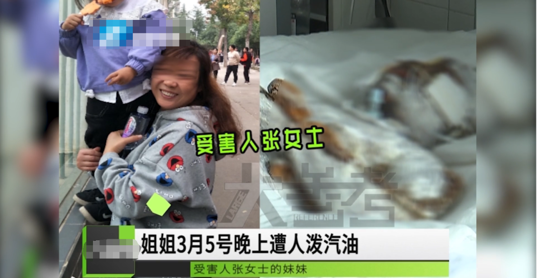 之后,男子竟直接将汽油泼向张女士,张女士还没来得及反应,全身就被点燃了。