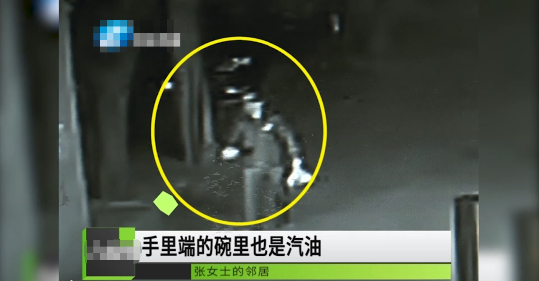 过了一会,男子手里拎着一袋汽油,右手还端了一碗,走到店内,找到张女士。