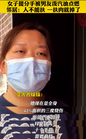 据张女士的妹妹透露,姐姐全身42%面积三度烧伤,面部严重毁容,耳朵缺失,十根手指都需要截肢……