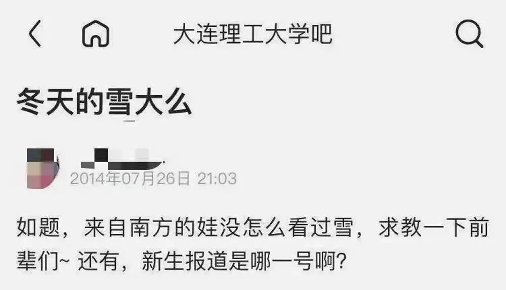 冬天的雪大么?来自南方的娃没怎么看过雪,求教一下前辈们~还有,新生报到是哪一号啊?