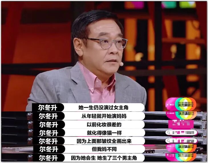 这时,导演尔冬升跟倪虹洁分享了一个小故事:我妈从12岁开始演戏,一生都没有演过女主角,而且从年轻就开始演妈妈……但是我妈不同,因为她会生,生了三个男主角。