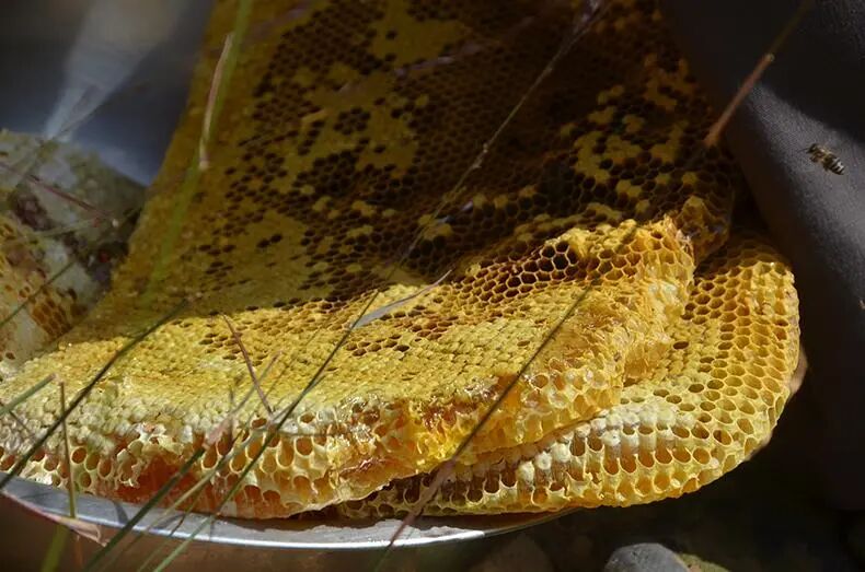 除了蜜蜂的巢房自身具有预防蜂蜜流淌的作用之外,对于蜂群中流淌的蜂蜜,蜜蜂也有自己的应对措施,比如我们不小心把蜂脾弄坏了,蜂蜜流淌的情况下,蜜蜂也会及时的进行处理,一般有3个方法来进行挽救。