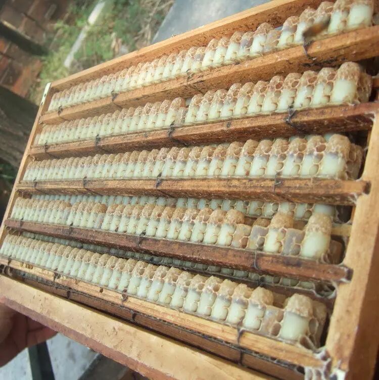 在生产蜂王浆的时候,原理是利用工蜂在蜂群过壮大以及失王的情况下会培育新的蜂王的原理,大量的把3日龄内幼虫移动到人工制作的王台基中,让工蜂大量分泌王浆哺育,在数量达到一定程度的时候,把蜂王幼虫取出来,剩余的收集起来就是蜂王浆了。