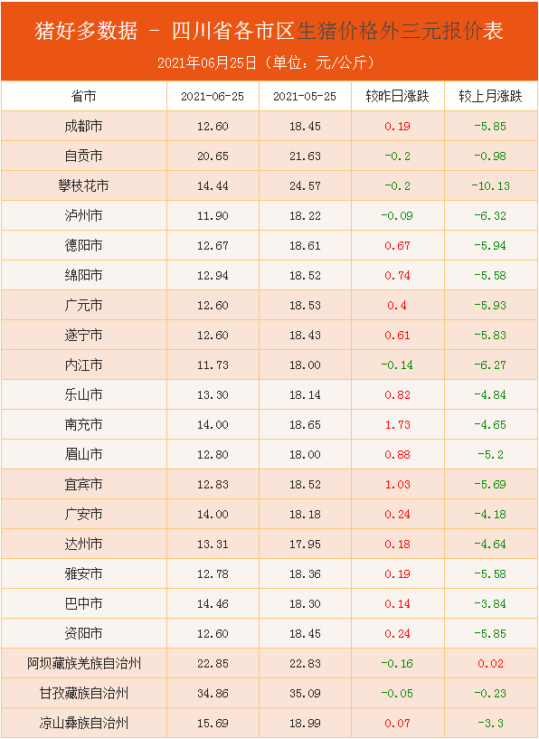 生猪生产大省四川猪价整体上扬,局部细微震荡,四川21个市场有15个市场上扬,和全国生猪走势相似,说明四川生猪供应偏紧,价格上扬成为了必然。不过局部市场价格高企的问题依然存在,甘孜州猪价达到34.86元/公斤的价格,说明甘孜州生猪供应严重不足。
