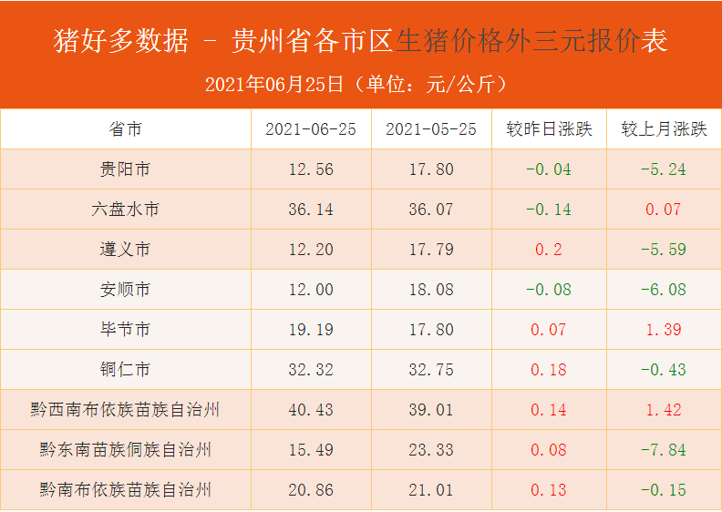 贵州9市场价格整体上扬,有6个市场价格上扬,说明生猪价格继续上扬,不过贵州局部生猪价格高企的问题依然没有缓解,今日黔西南州生猪价格达到40.43元/公斤,六盘水价格也达到36.14元/公斤,铜仁市达到32.32元/公斤,而省城贵阳猪价为12.56元/公斤,说明贵州生猪供应市场严重不平衡,生猪供应局部问题还是比较严重。