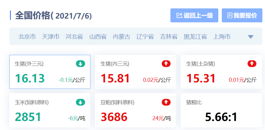 7月6日全国平均猪价情况