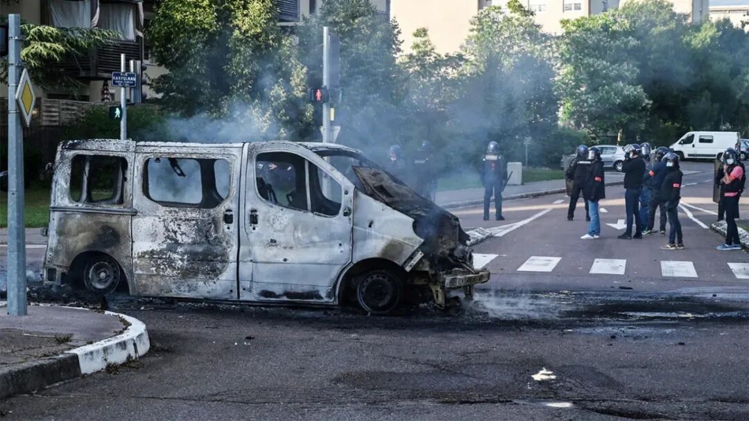 第戎骚乱中被点燃的汽车
