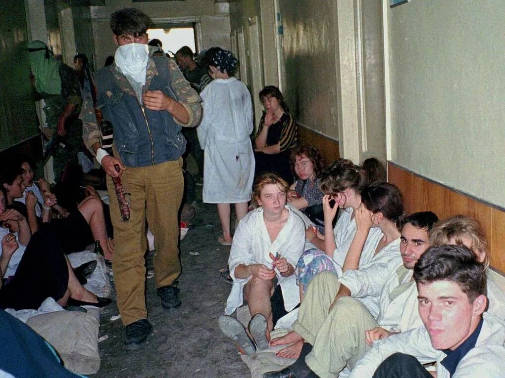 在家人被炸死十一天后,巴萨耶夫组织了120名敢死队员,穿上俄军士兵的衣服偷偷潜入了距离车臣110公里的俄罗斯城市Budennovsk。他们在这里先袭击了警察局,然后又跑进了一家医院,劫持了大约两千人作为人质。