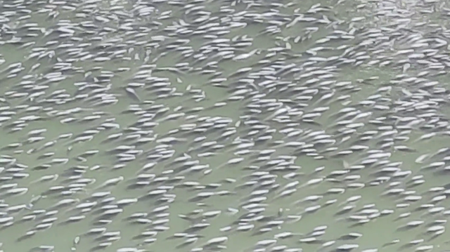 不过,因为河里的鱼群实在太庞大,这些本属于掠食者的白鹭、水鸟显得着实“形单影孤”,它们吃掉的鱼,对于河面鱼群“暴动”的情况,几乎毫无影响......