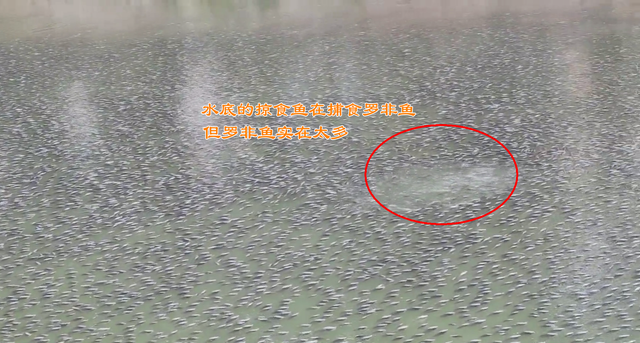 ——除了天上的水鸟,还有水底的掠食鱼,比如黑鱼、塘鲺鲶等都在捕食罗非鱼,但对于如此庞大的罗非鱼群,“杀伤力”实在有限。
