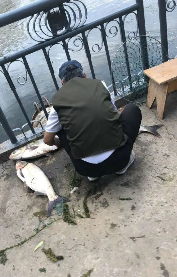 出于钓鱼人的本能,这位钓鱼人老孙虽然还在震惊中,但依然瞬间逮了几条上岸的鱼,马上就塞满了空荡荡的鱼桶....