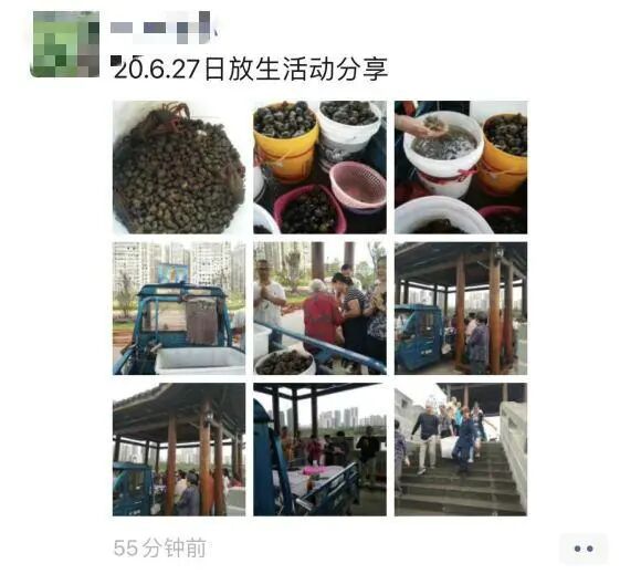 令人瞠目结舌的是,这位放生者几乎每隔几天就要放生一批福寿螺、小龙虾