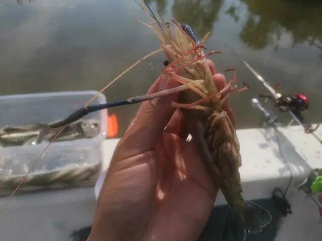 “后面我赶紧去提竿刺鱼,感受着鱼竿上传来的力道,我还以为是条鲫鱼,谁知道竟然是一只呈淡蓝色的虾,从体型上来看应该接近2两了,虽然我们这边资源比较好,但是像这么大的虾还是很少见的。”钓鱼人王大哥又补充道。