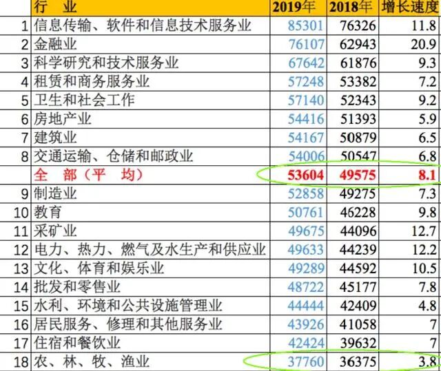 长江君找来了我国去年的人均收入统计,所有行业的中位数是5.3万元/年,大概每月4100元多一点。