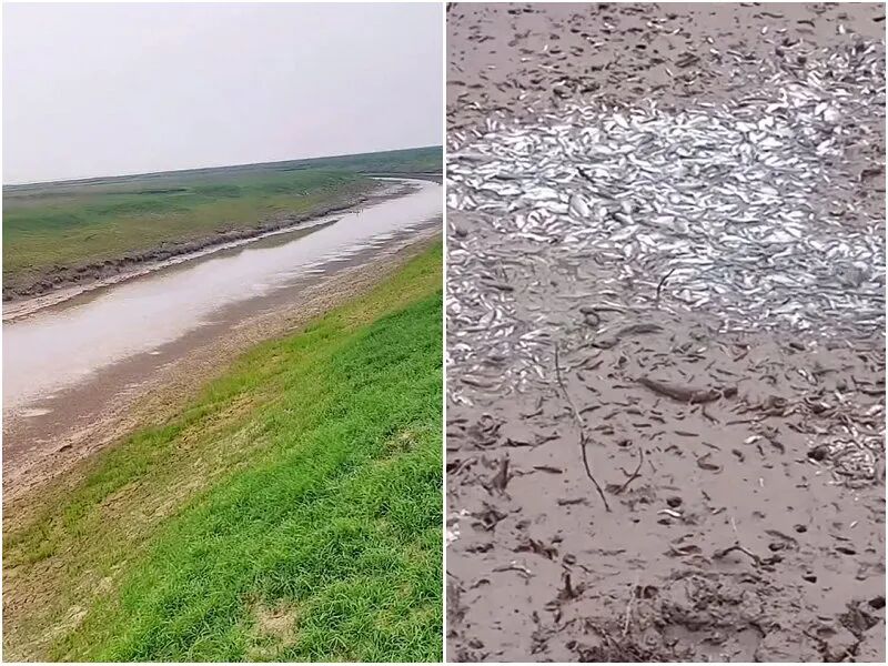退水后洞庭湖,来不及跑的鱼群只能等死