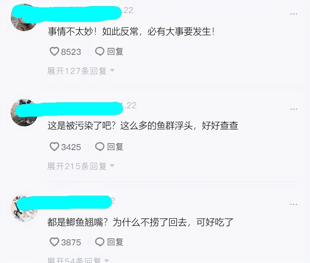 如此多的洞庭湖野生鱼浮头聚集在一起,且水面上可以看到已经有一些翻肚的死鱼(鲫鱼、翘嘴鱼等),许多网友看后都感觉“事情不太妙”,甚至有人惊呼“这是被污染了吧?”