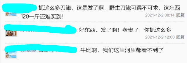 甚至有网友羡慕表示“抓这么多刀鳅,这是发了啊,野生刀鳅可遇不可求,这东西120一斤还难买到!”