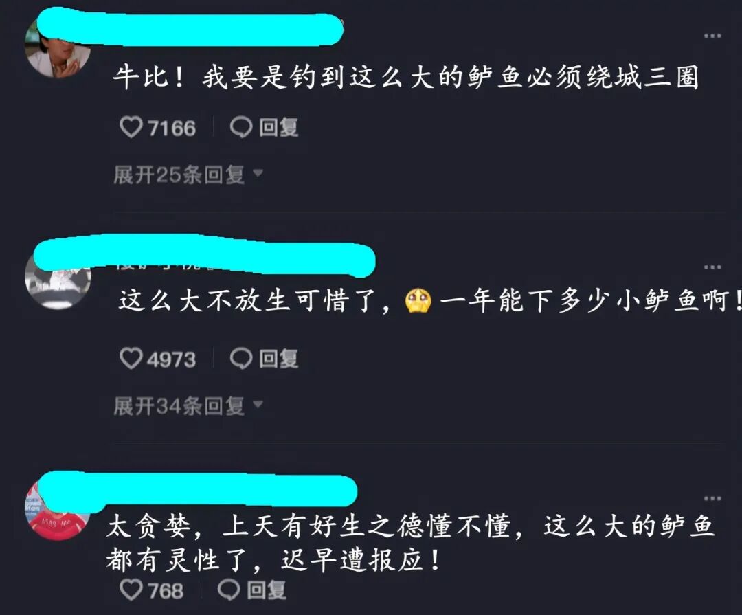 甚至还有“比较极端”的网友指责这位钓鱼人“太贪婪,上天有好生之德懂不懂,这么大的鲈鱼都有灵性了,迟早遭报应”……