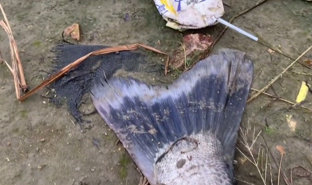 好在手里的鱼竿几千块没白花,虽然一阵手忙脚乱,最终黄先生还是在几位钓友的帮助下,还是将这条“28斤巨鲈”给拉上了岸,